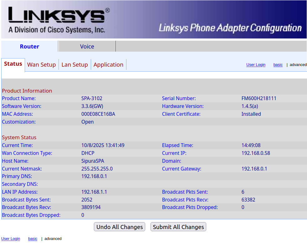 Hi. this is the opening router screen using admin/advanced login .. https://auslink.info/spa3102/linkys1.png